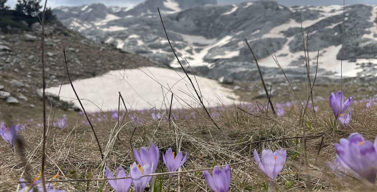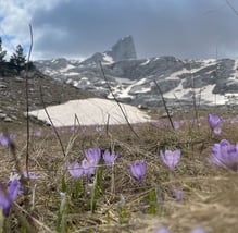 Umzäunt von Gipfelgrauin Wolkenfetzen verfangendie Kälte rühmenddie Wärme begrüßendpurpurt Krokusauf breiter Flur.